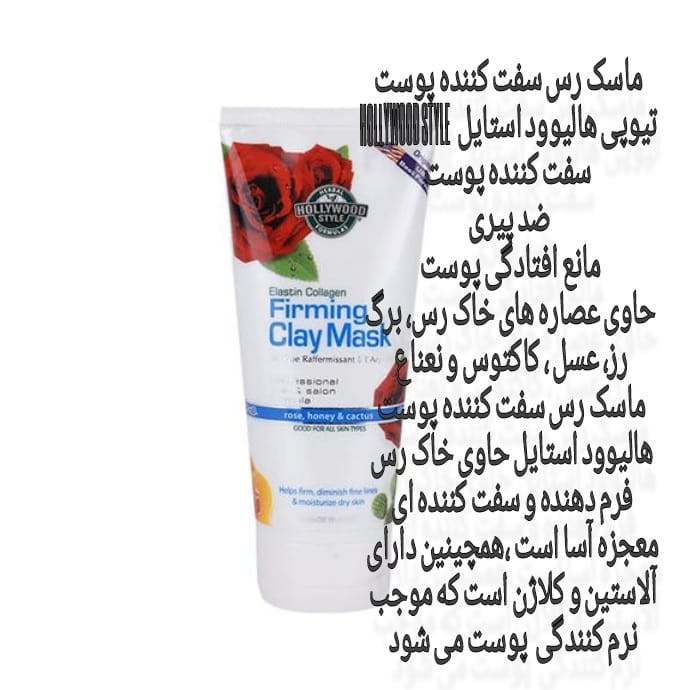 ماسک صورت هالیوود استایل مدل Firming Clay حجم لیتر دارای ویتامینA , C سازگار با پوستهای معمولی , مختلط سفت کننده پوست ضد پیری مانع افتادگی پوست حاوی عصاره های خاک رس، برگ رز، عسل ، کاکتوس و نعناع همراه با کلاژن و الاستین ماسک رس سفت کننده پوست هالیوود استایل حاوی خاک رس فرم دهنده و سفت کننده ای معجزه آسا است ،همچینین دارای آلاستین و کلاژن است که موجب نرم کنندگی و نعناع به عنوان یک آنتی اکسیدان طبیعی که کمک می کند خطوط لبخند و اخم و چین و چروک از بین برود #ماسک_صورت_هالیوود_استایل