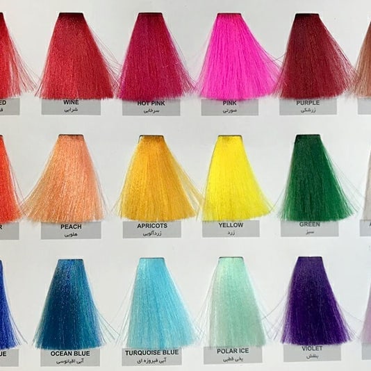 انتخاب رنگ / قرمز / صورتی / یاسی / آبی دودی / سورمه ای / بنفش / شرابی / زرد / هلویی / بلوند خاکستری / آبی فیروزه ای / سبز / سرخابی / زرشکی