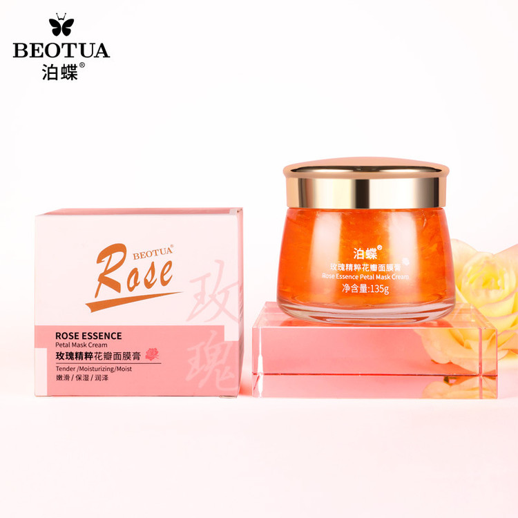 ماسک صورت گل رز Beotua ماسکی با بافت گیاهی و ژله مانند است که به شما در تسکین و آبرسانی پوستی کمک می کند.