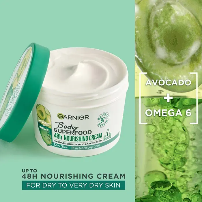 کرم بدن زنانه - مردانه فرانسوی گارنیر Garnier Avocado & بادی سوپرفود Omega آووکادو و امگا ۶ ، ۳۸۰ میل
